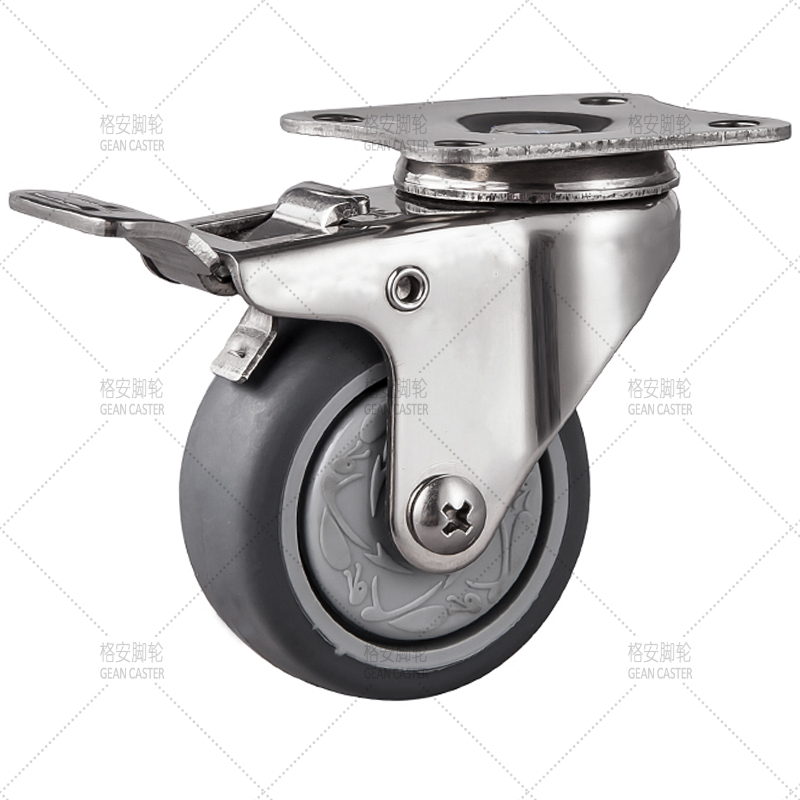 不锈钢微型系列1.5寸2寸平底安装塑芯人造胶(TPR)脚轮